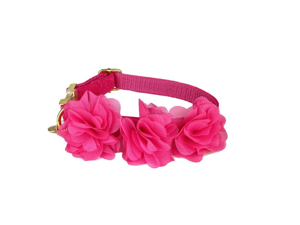 Luxusní obojek z kolekce Fuschia Roses je vyrobený z elegantního sametu v barvě šťavnaté růžové, zdobený půvabnými květinami ve stejné barvě z látky, díky které jej v případě zašpinění můžete vyprat ve vodě. Zlatá přezka a kování podtrhují eleganci. Jedná se o model, který si zamiluje každý mazlíček i jeho majitel.