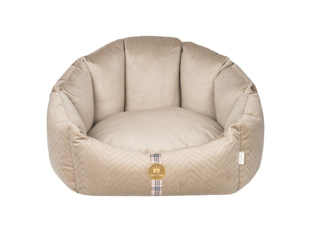 Pelíšek z kolekce Chic se skořápkovým střihem je perfektní volbou pro každého majitele domácích mazlíčků. Vyrobený z kvalitního béžového sametu, v kombinaci se sametem s pruhovaným vzorem ve stejné barvě, díky čemuž se hodí do každého moderního interiéru. Pelíšek zdobí páska s nadčasovým károvaným vzorem charakteristickým pro kolekci Chic. Díky použití nejkvalitnějších potahových látek je v případě potřeby můžete otřít vlhkým hadříkem. V případě většího znečištění můžete výplň z vnitřního polštáře vyjmout a pelíšek vyprat v pračce.