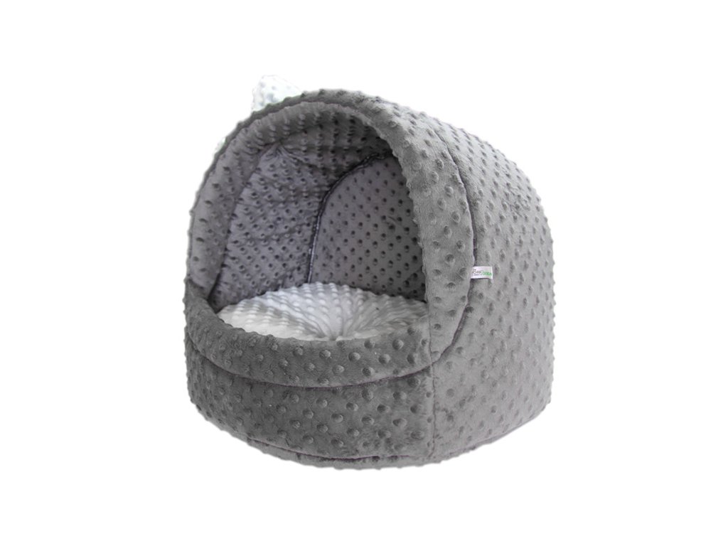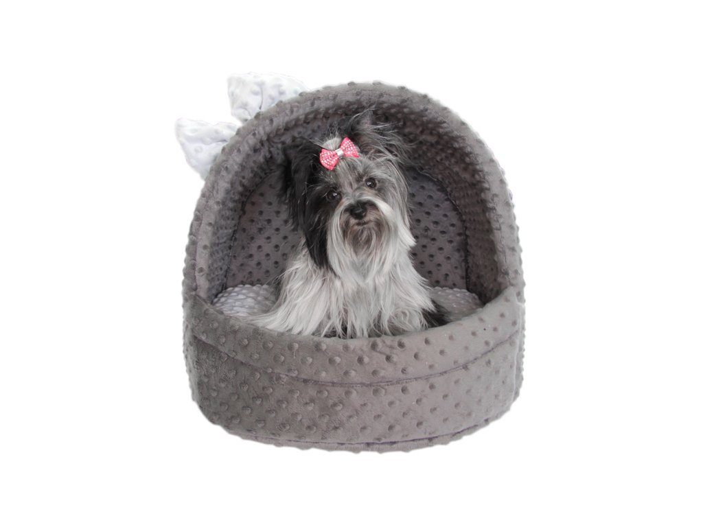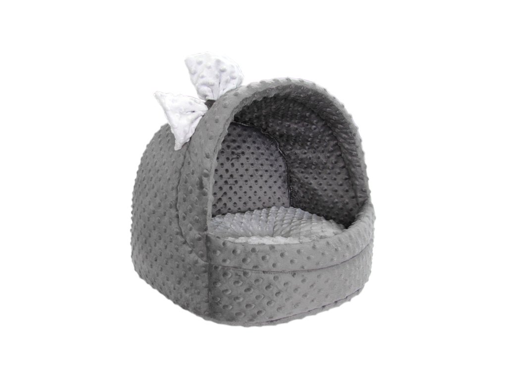 Kukaň Minky je vyrobena z jemného materiálu v kombinaci světle a tmavě šedé barvy. Na stříšce je zdobena mašlí. Kukaně pro psy mají vyjímatelný polštářek pro lepší údržbu. Hodí se ke schodům Minky z naší kolekce.