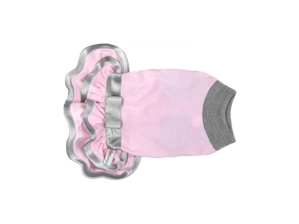 Elegantní a pohodlné šaty pro psy Chic ve světle růžové barvě se stříbrně lemovanými kanýry. Kolem tlapek a krku jsou náplety, které hezky přilnou k tělíčku. Vaše fenka bude nepřehlédnutelná. Ideální na jaro. Šaty jsou velmi slušivé a perfektně sedí. Jsou vyrobeny z jemné bavlny. Kanýr na zadečku pěkně sedí a dělá šaty zajímavými.