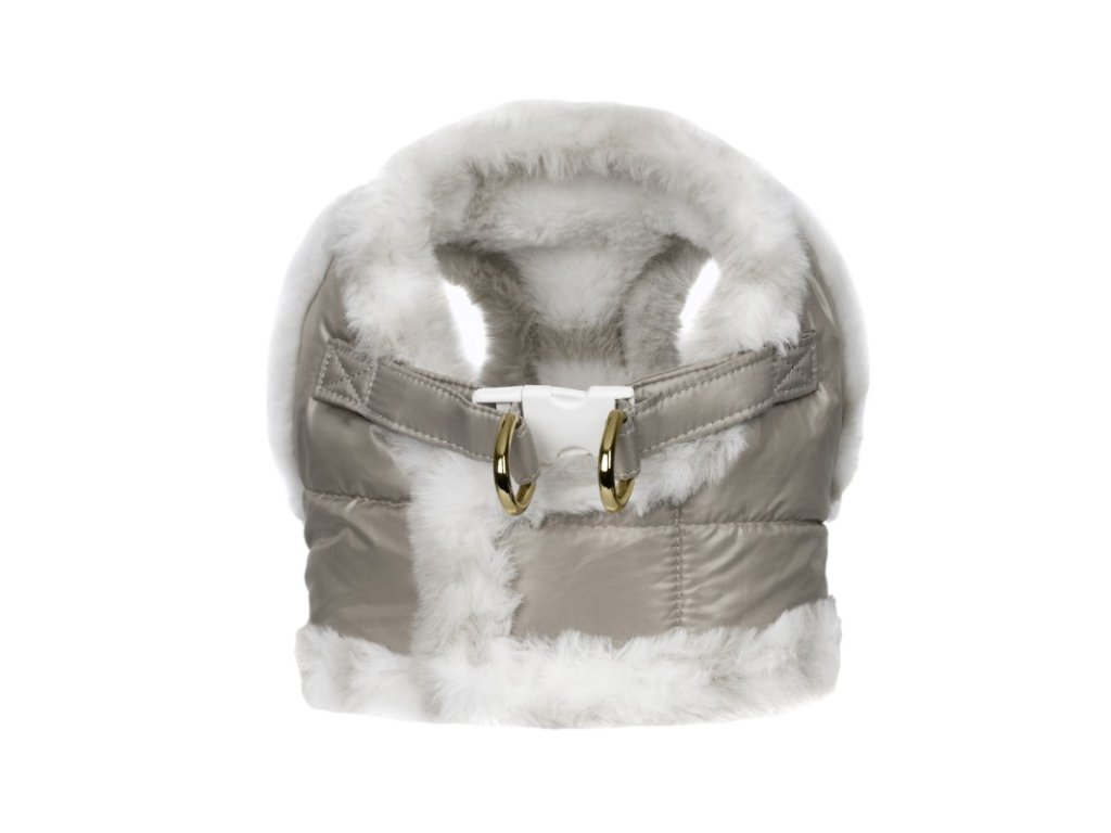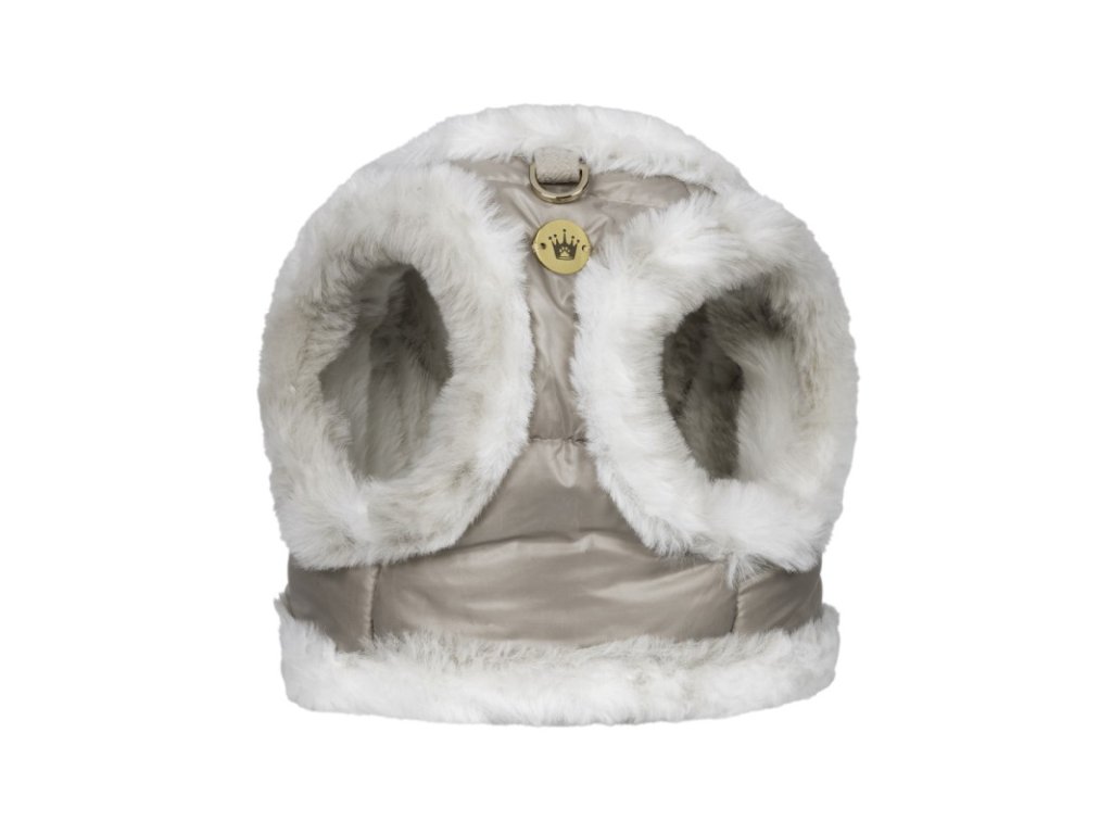 Zimní postroj Nordic Bliss je ztělesněním skandinávské elegance v kombinaci s maximálním pohodlím. Je vyrobený z vysoce kvalitní, jemně třpytivé látky v tlumeném béžovém odstínu a je podšitý měkkým, nadýchaným materiálem, který poskytuje teplo a pohodlí i v nejchladnějších dnech. Model ve tvaru C se dokonale přizpůsobí siluetě vašeho mazlíčka, aniž by tlačil, a zaručuje naprostou volnost pohybu. Dva zlaté kroužky na vodítko a pevná spona zajišťují bezpečnost a odolnost, zatímco celkový vzhled je neuvěřitelně stylový a elegantní. Nordic Bliss kombinuje funkčnost, pohodlí a luxusní design – perfektní postroj pro domácí mazlíčky, kteří si každý den cení pohodlí a výjimečného stylu.
